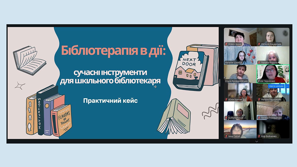 Практичний кейс був присвячений терапевтичним методикам, заходам, міні-проєктам, майстеркам з написання терапевтичних казок, книжковим виставкам та багатьом іншим напрацюванням та інструментам, які допомагають сучасному бібліотекарю знайомити дітей з власними емоціями, вчитися практикам самопідтримки та зрозуміти, що книга та читання мають великий терапевтичний вплив та є рятівними засобами у різних життєвих ситуаціях.