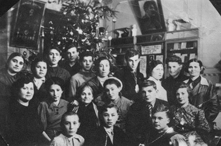 Перша завідуюча бібліотекою Ревекка Сухотіна з працівниками та читачами. Новий, 1935 рік…